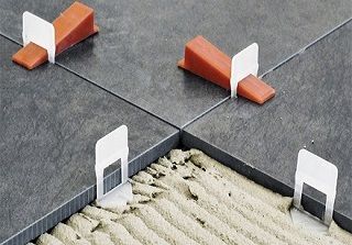 Суть метода заключается в том, что необходимо положить максимально ровно при помощи уровня или нивелира только первую плитку. Остальные будут выравниваться по ней. Как? Тут на помощь приходит набор для выравнивания плитки – зажимы с клином.
