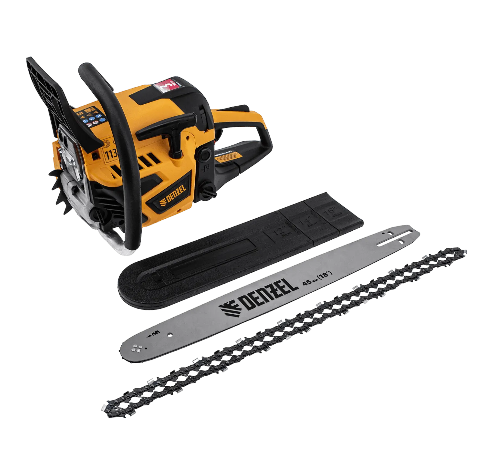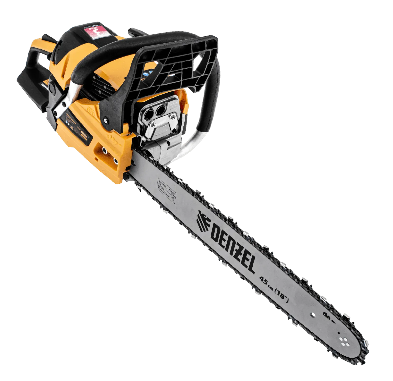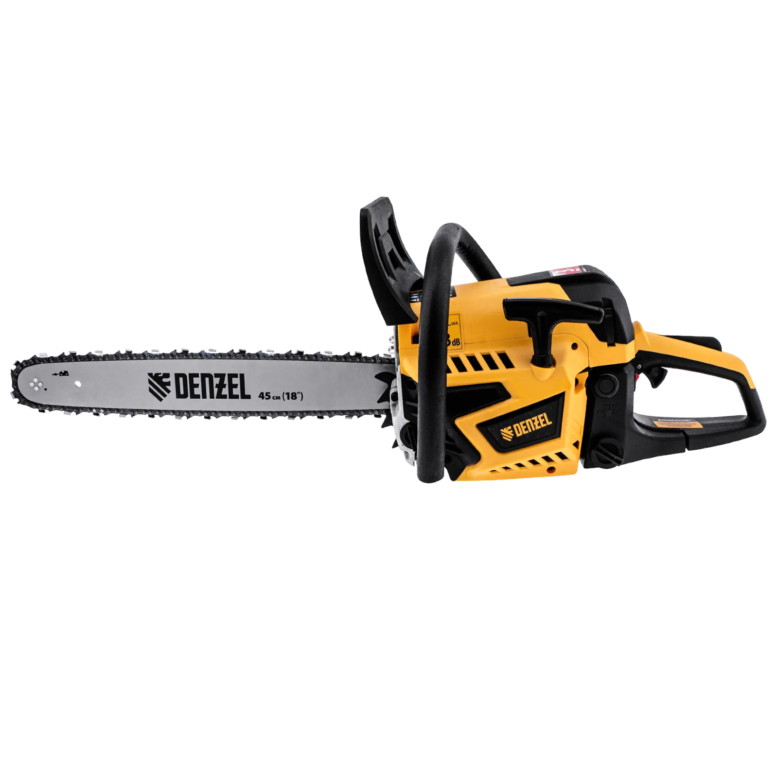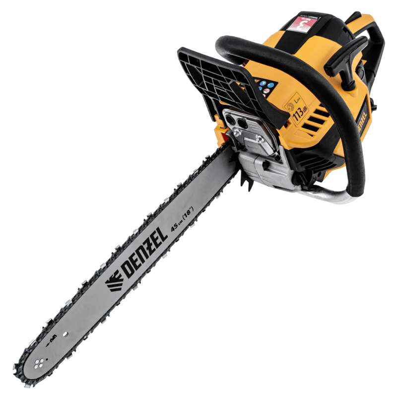 Цепная бензиновая пила Denzel DS-5218 предназначена для распила древесных материалов, срезки веток и сучьев, заготовки дров, валки деревьев. Пригодится при небольших строительных или садовых работах.