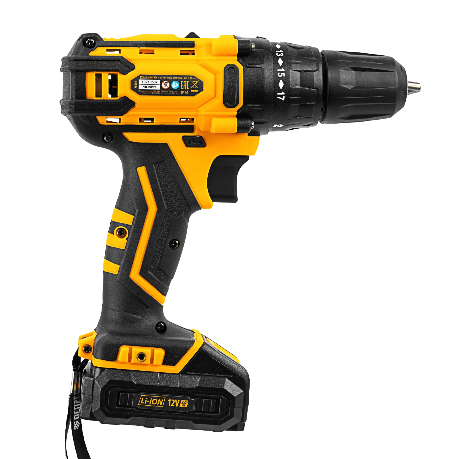 Аккумуляторная дрель-шуруповерт Denzel CDL-12-02BM с 2 батареями Li-Ion 12 В предназначена для монтажа и демонтажа резьбовых соединений, cверления отверстий в металле (до 10 мм), древесине (до 16 мм), пластмассе и других материалах. Инструмент пригодится профессионалам и любителям на строительной площадке, дома или на даче.Надежные литий-ионные аккумуляторы без эффекта памяти и защитой от глубокого разряда обеспечивают долгий срок службы инструмента. Дрель не зависит от сети питания, что делает удобной работу на строительных объектах, на высоте и в отдаленных участках дома.