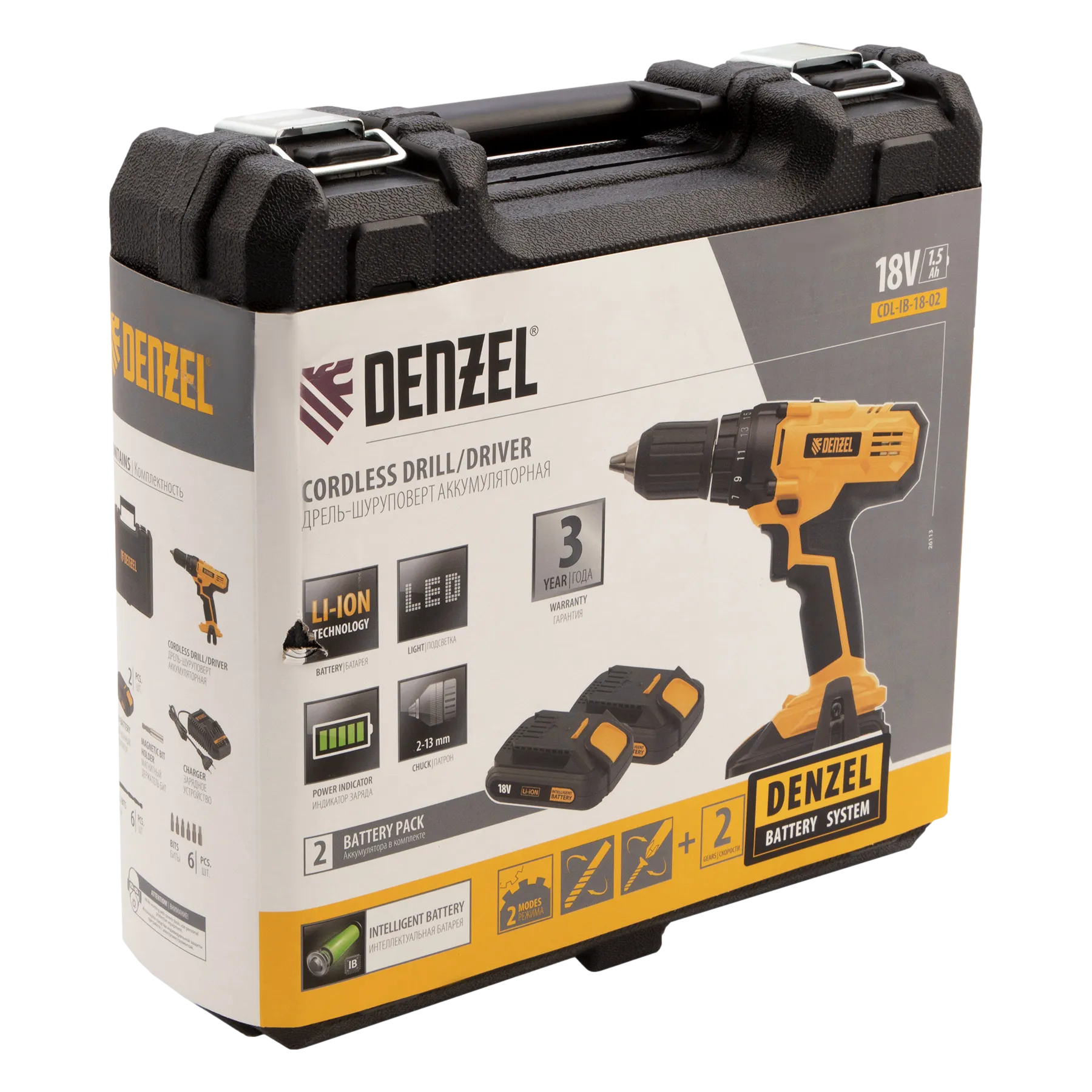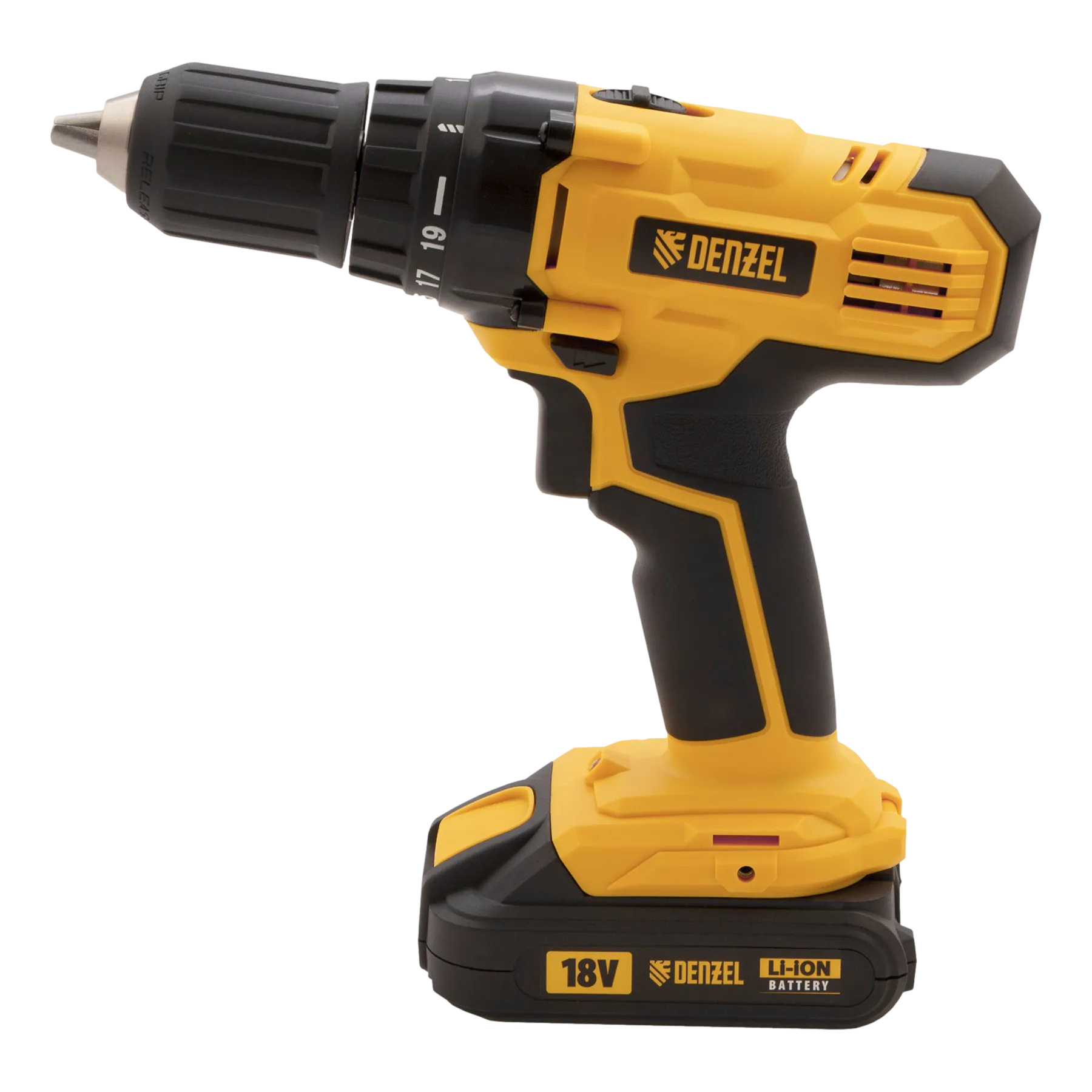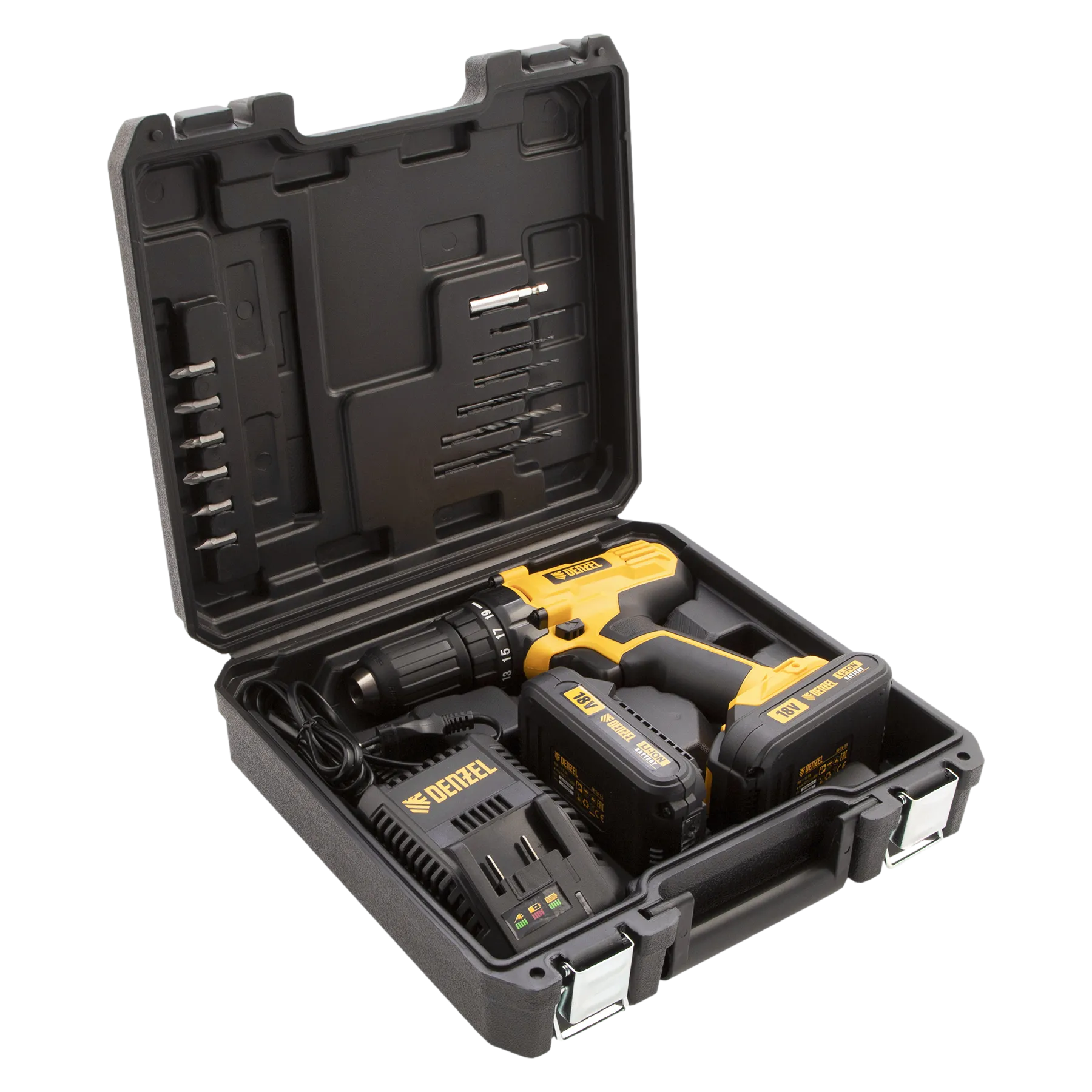 Аккумуляторная дрель-шуруповерт DENZEL CDL-IB-18-02 предназначена для домашних мастеров.
