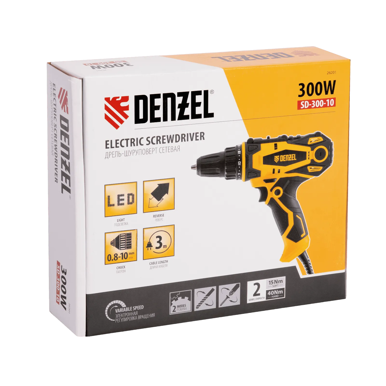 Сетевая дрель-шуруповерт Denzel SD-300-10 предназначена для монтажа и демонтажа резьбовых соединений, а также сверления отверстий в металле (до 10 мм), древесине (до 20 мм) и других материалах. Крутящий момент 40 Нм позволяет эффективно решать поставленные задачи. Дрель-шуруповерт будет полезна на строительной площадке и в быту.