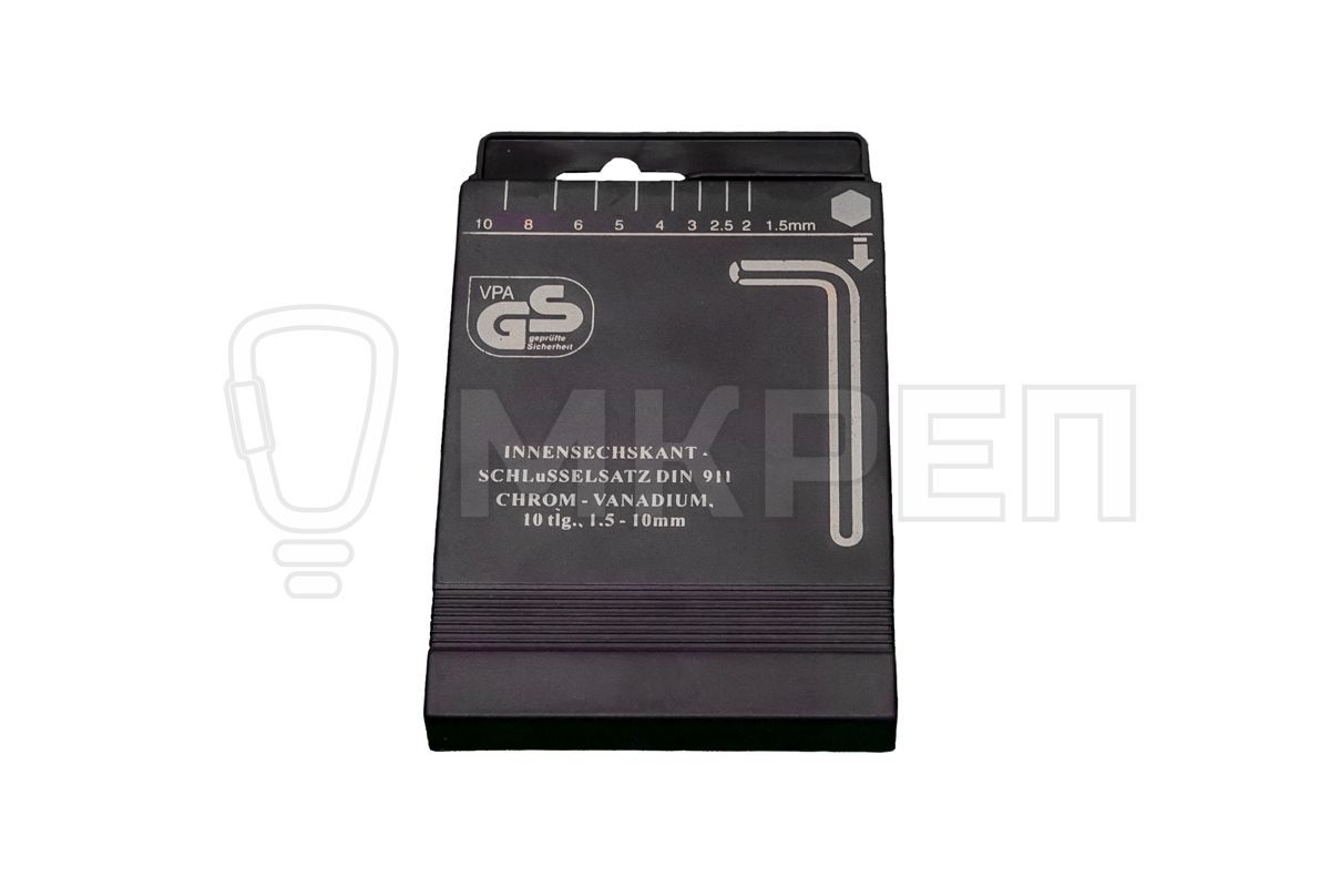 Набор состоит из шестигранных ключей размерами от 1,5 до 10 мм. Инструмент изготовлен из качественной стали, защищен от коррозии оксидированием.
