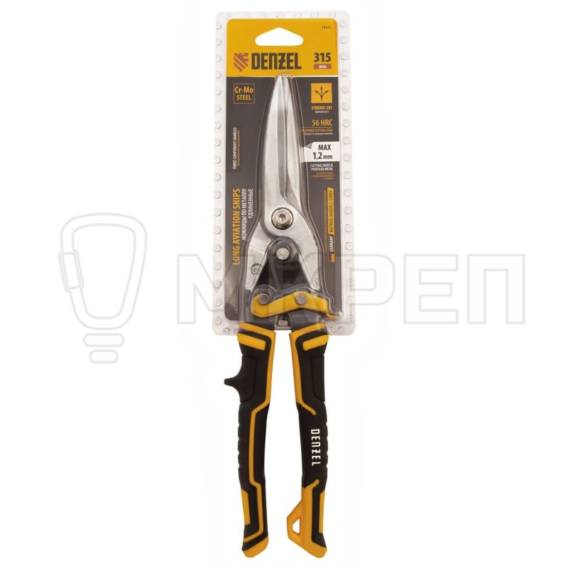 Ножницы Denzel длиной 315 мм, из стали CrMo, с трехкомпонентными рукоятки, предназначены для прямого проходного реза. За счет удлиненной рабочей части легко справляются с резкой широких металлических листов толщиной до 1,2 мм. Они пригодятся профессиональным мастерам в ходе проведения строительных, кровельных и слесарных работ.