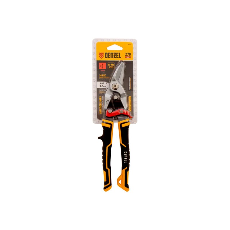 Ножницы по металлу Denzel 78372 общей длиной 270 мм, из стали-CrMo, с трехкомпонентными рукоятками, предназначены для прямого и левого реза листовых металлических заготовок и металлопрофиля толщиной до 1,2 мм. Инструмент отличается усиленной конструкцией осевого шарнира, поэтому рассчитан на профессиональное использование. Незаменим при осуществлении строительных, кровельных и слесарных работ.
