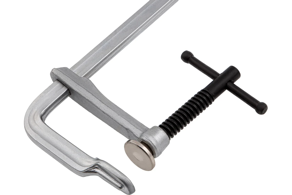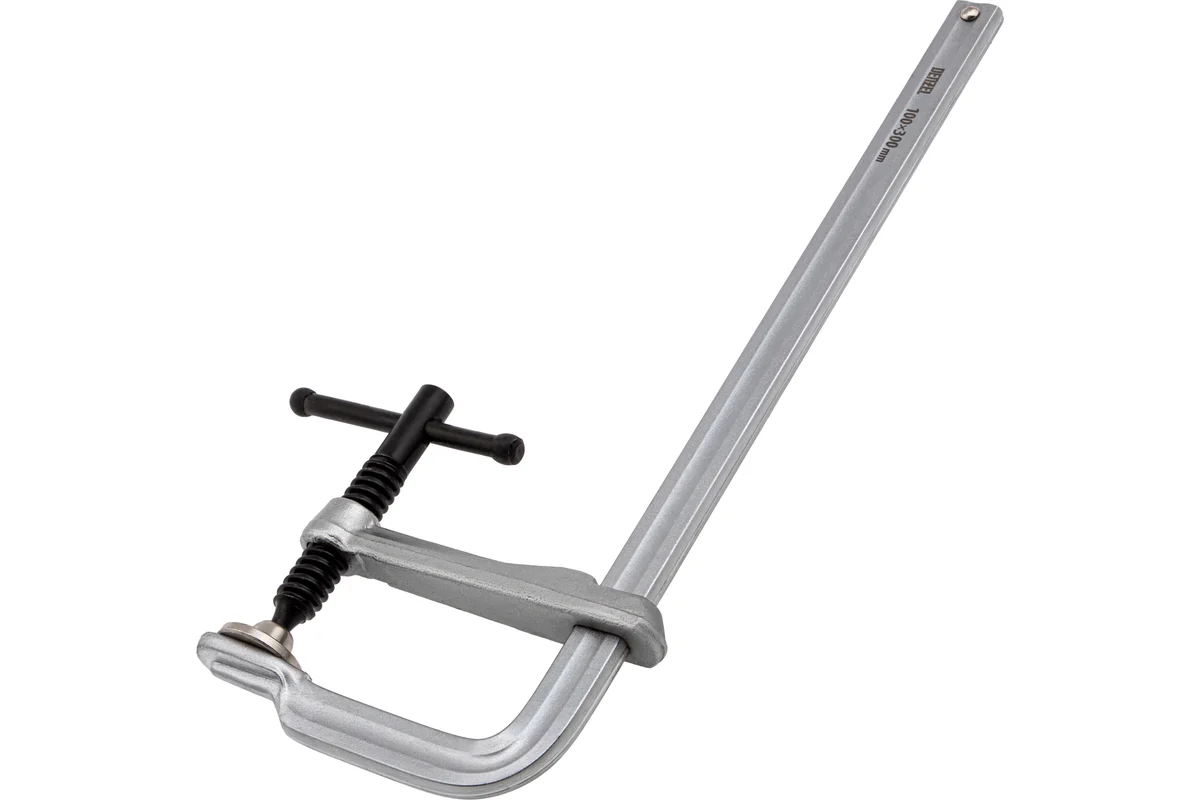 Кованая F-образная струбцина Denzel 20470 с глубиной зажима 100 мм, усиленная, предназначена для фиксации деталей шириной до 300 мм и материалов при проведении слесарных, столярных и сварочных работ. Тавровый профиль обеспечивает устойчивость конструкции к изгибу, что позволяет фиксировать детали со значительным усилием. Струбцина , подходит для профессионального применения.