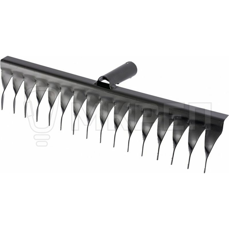 Стальные грабли с 16 витыми зубьями и шириной гребенки 420 мм, без черенка, служат для уборки с газонов и грядок листвы и мусора, а также позволяют проводить аэрацию почвы. Их можно установить на любой удобный черенок диаметром 30 мм.