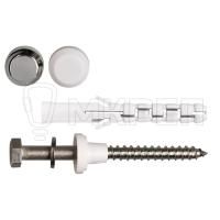 В комплекте PWC: 2 нейлоновых дюбеля, 2 сантех. шурупа, 2 нержавеющих шайбы, 2втулки + 4заглушки (2белых и 2хром)Глубина сверления 75 мм.