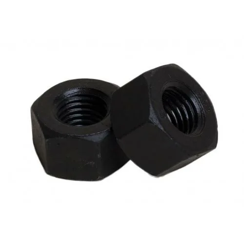 DIN 934 - это шестигранная высокопрочная гайка класса прочности 12, без покрытия (черная). Она имеет крупную метрическую резьбу, нормальную высоту, правильный внешний шестигранник, двустороннюю фаску и ровную кольцевую опорную поверхность. Крепеж изготовлен из легированной стали, термически закален по специальной технологии для упрочнения и повышения твердости до 366...414 HB по Бринеллю.