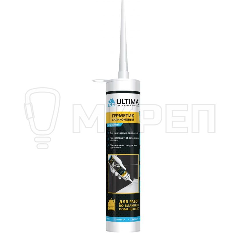 Силиконовый санитарный герметик Ultima S белый 280ml предназначен для заполнения подвижных швов и монтажа сантехнического оборудования в помещениях с повышенной влажностью (бассейны, ванные комнаты, душевые кабины, кухни).