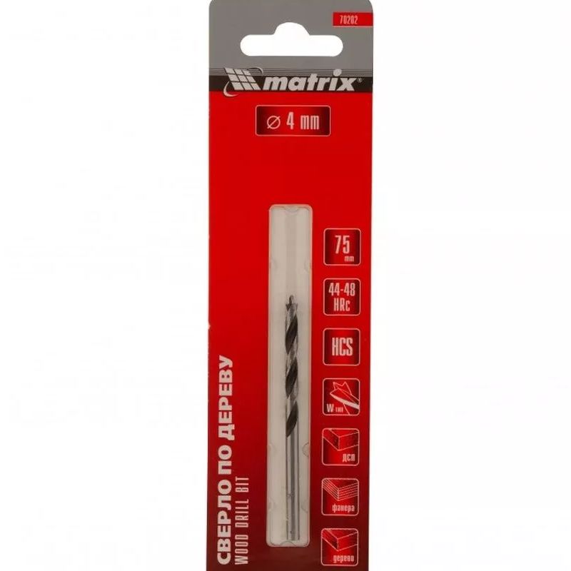 —Сверло, по дереву, 4 х 75 мм, Matrix