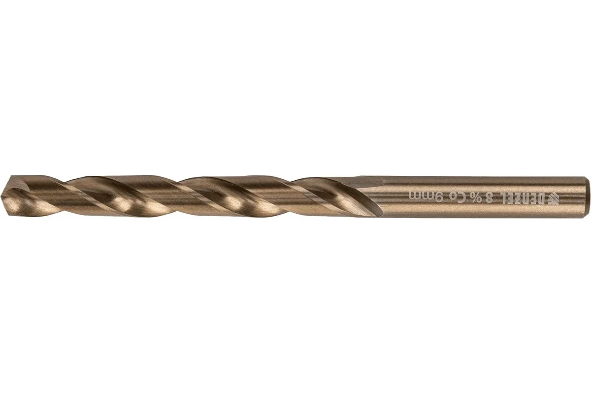Кобальтовое сверло по металлу Denzel 71457 диаметром 9 мм, из стали HSS Co-8%, позволяет получать отверстия высокой точности в нержавеющей стали, цветных металлах, легированных и нелегированных сталях с пределом прочности до 1100 Н/мм2, а также в жестком пластике. Угол заточки 135° обеспечивает повышенную точность и чистоту сверления.