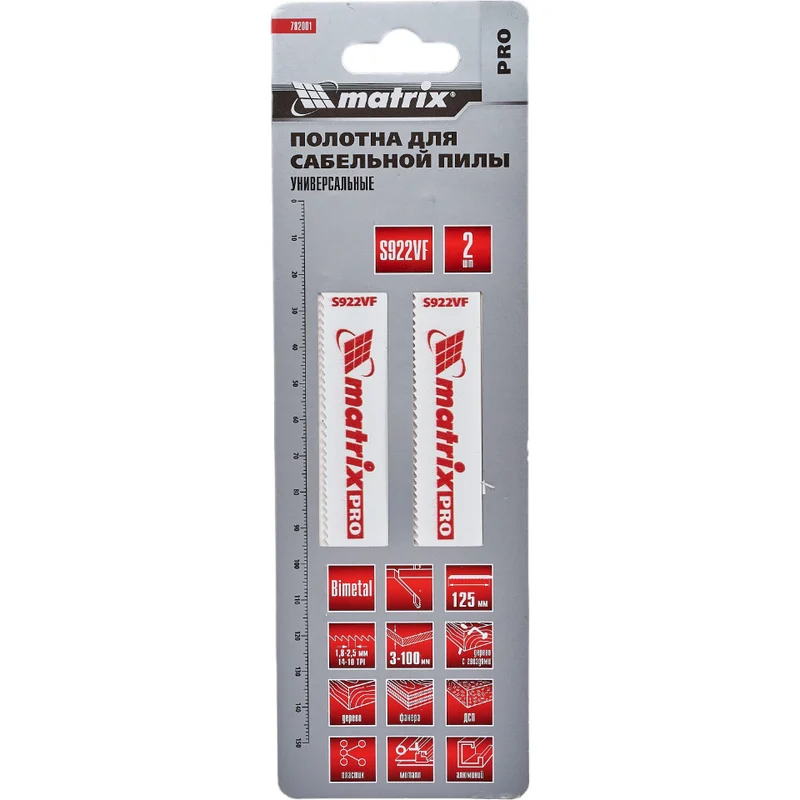 Универсальные полотна для сабельной пилы Matrix PRO 782001, S922VF, 125/1,8-2,5 мм, Bimetal, 2 шт. в упаковке, позволяют распиливать заготовки из дерева, пластика, листового металла, фанеры, ДСП, справляются также с алюминиевыми профилями и древесиной с гвоздями. В зависимости от материала глубина распила составляет от 3 до 100 мм. Полотна пригодятся на строительной площадке, во время ремонта, демонтажа различных конструкций, будут полезны дома и на даче.
