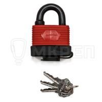 Навесной замок с прочным обрезиненным корпусом. Конструктивные особенности замка (герметизация корпуса и дужки замка, минимальный размер зазоров между деталями, специальная крышка на ключевой блок) значительно повышают его стойкость к атмосферным осадкам, предупреждая коррозию и продлевая срок службы. Закаленная дужка и сложная конструкция корпуса снижают вероятность взлома. В комплекте 3 ключа.