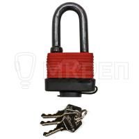 Навесной замок с прочным обрезиненным корпусом. Конструктивные особенности замка (герметизация корпуса и дужки замка, минимальный размер зазоров между деталями, специальная крышка на ключевой блок) значительно повышают его стойкость к атмосферным осадкам, предупреждая коррозию и продлевая срок службы. Высокая закаленная дужка стального засова удобна при наличии на дверях высоких запорных петель («разбоев»). Особенности конструкции снижают вероятность взлома. В комплекте 3 ключа.