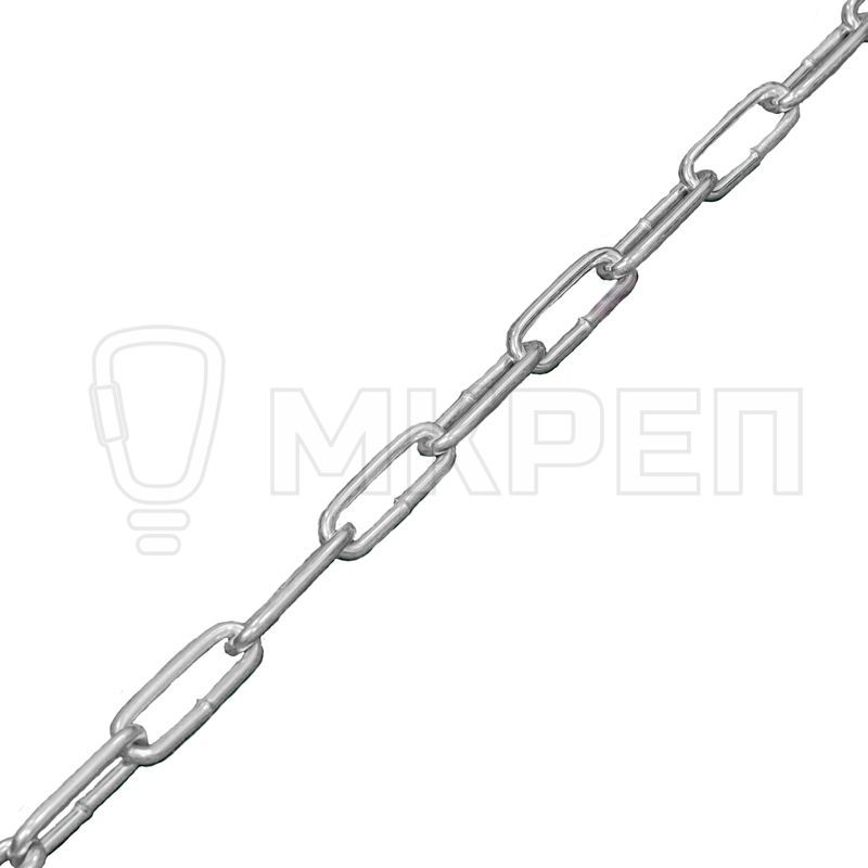 Цепь с длинным звеном 5 мм используется для различных монтажных и такелажных работ при установке подвесных конструкций, страховочных и натягивающих конструкций. Цепь не предназначена для грузоподъемных работ.