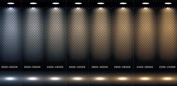 Существует такое понятие, как «цветовая температура». От этого показателя зависит оттенок света, излучаемого лампочкой. Он имеет конкретные значения и исчисляется в кельвинах (К). Таким образом, выделяют три основных типа освещения: