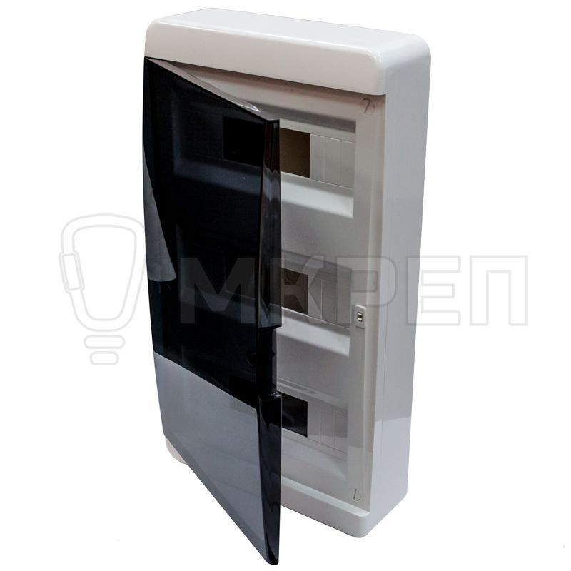 Щит предназначен для настенного монтажа в помещениях разного назначения и используется для установки модульных устройств на DIN-рейку.