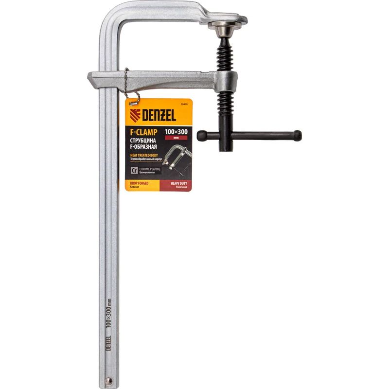 Кованая F-образная струбцина Denzel 20470 с глубиной зажима 100 мм, усиленная, предназначена для фиксации деталей шириной до 300 мм и материалов при проведении слесарных, столярных и сварочных работ. Тавровый профиль обеспечивает устойчивость конструкции к изгибу, что позволяет фиксировать детали со значительным усилием. Струбцина , подходит для профессионального применения.
