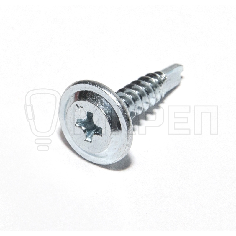 Саморез с прессшайбой используется для крепления листового металла. Оснащен плоской и широкой головкой, что обеспечивает надежное прикрепление листов из тонкой стали к каркасу или основанию, которое может быть собрано из разных материалов — деревянных или пластиковых элементов, стальных тонкостенных профилей. Наконечник имеет форму бура, это намного облегчает монтаж крепежа с помощью электроинструмента (шуруповерта).