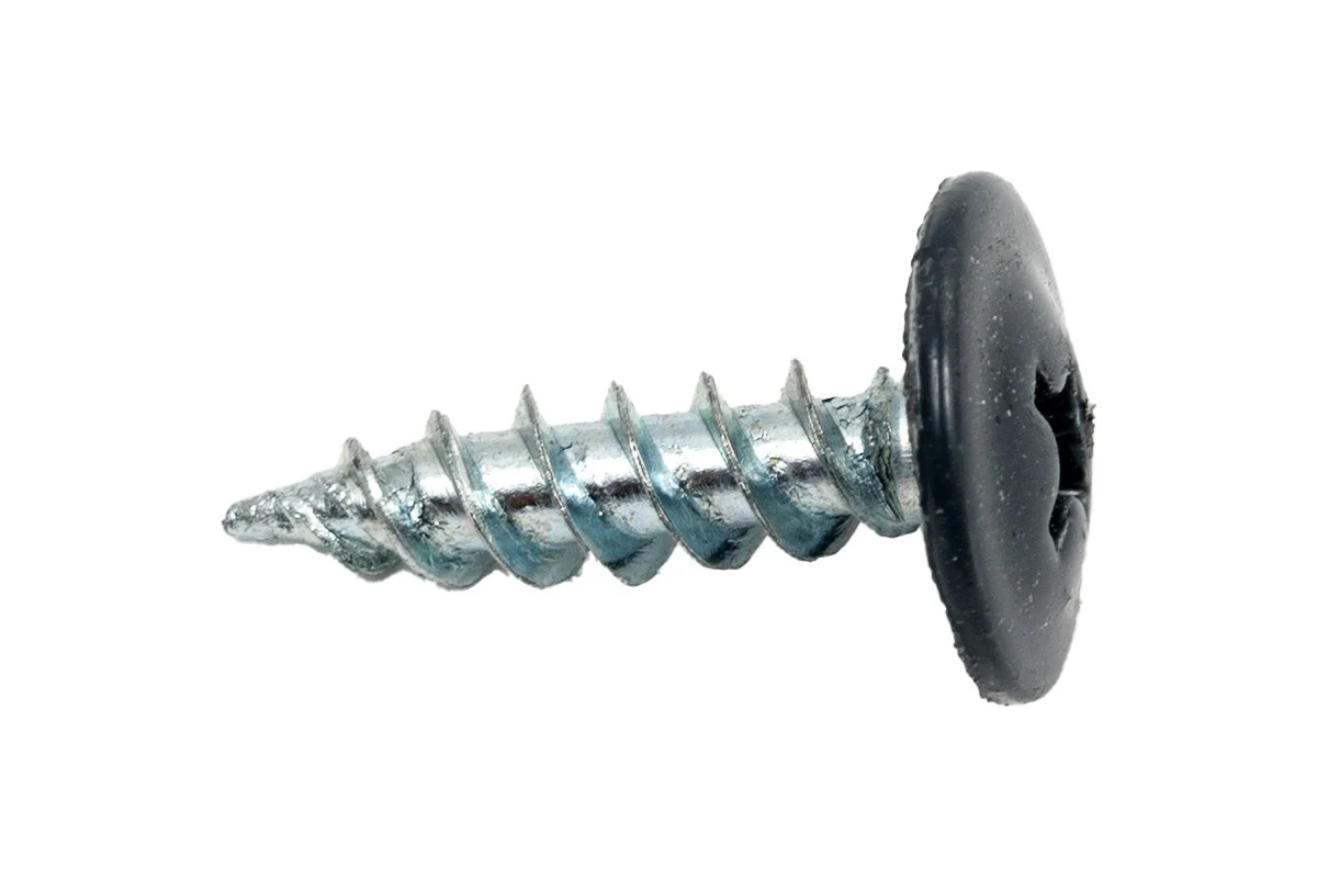 Саморез с прессшайбой острый по металлу оцинкованный окрашенный (ПШ) – для крепления металлических листов, кровельных материалов, поликарбоната, пластика друг к другу или к другим поверхностям. Используется для крепления металлических листов, профилей, труб и других деталей. Головка имеет полукруглую форму с пресс-шайбой и крестообразным шлицем Philips с частым шагом резьбы. Наконечник – острый. Саморез плотно прижимает лист и не дает крепежу самопроизвольно раскручиваться.