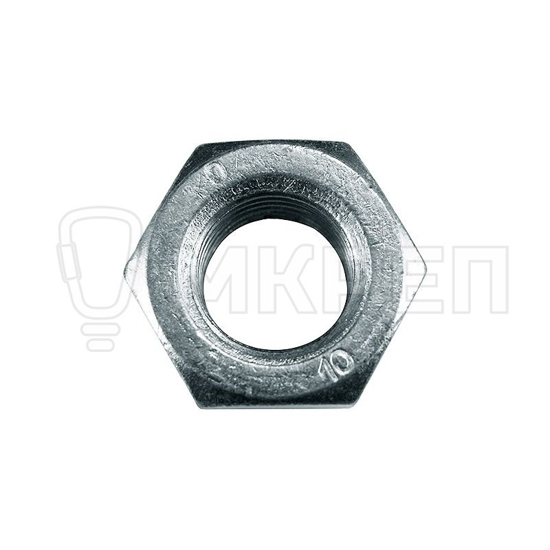 Изготовление: гайки класс прочности 10 производятся из углеродистой стали в соответствии со стандартами DIN 934, ISO 4032 и ГОСТ 5915-70. После изготовления гайки проходят процедуру гальванического цинкования для увеличения антикоррозийных свойств изделия.
