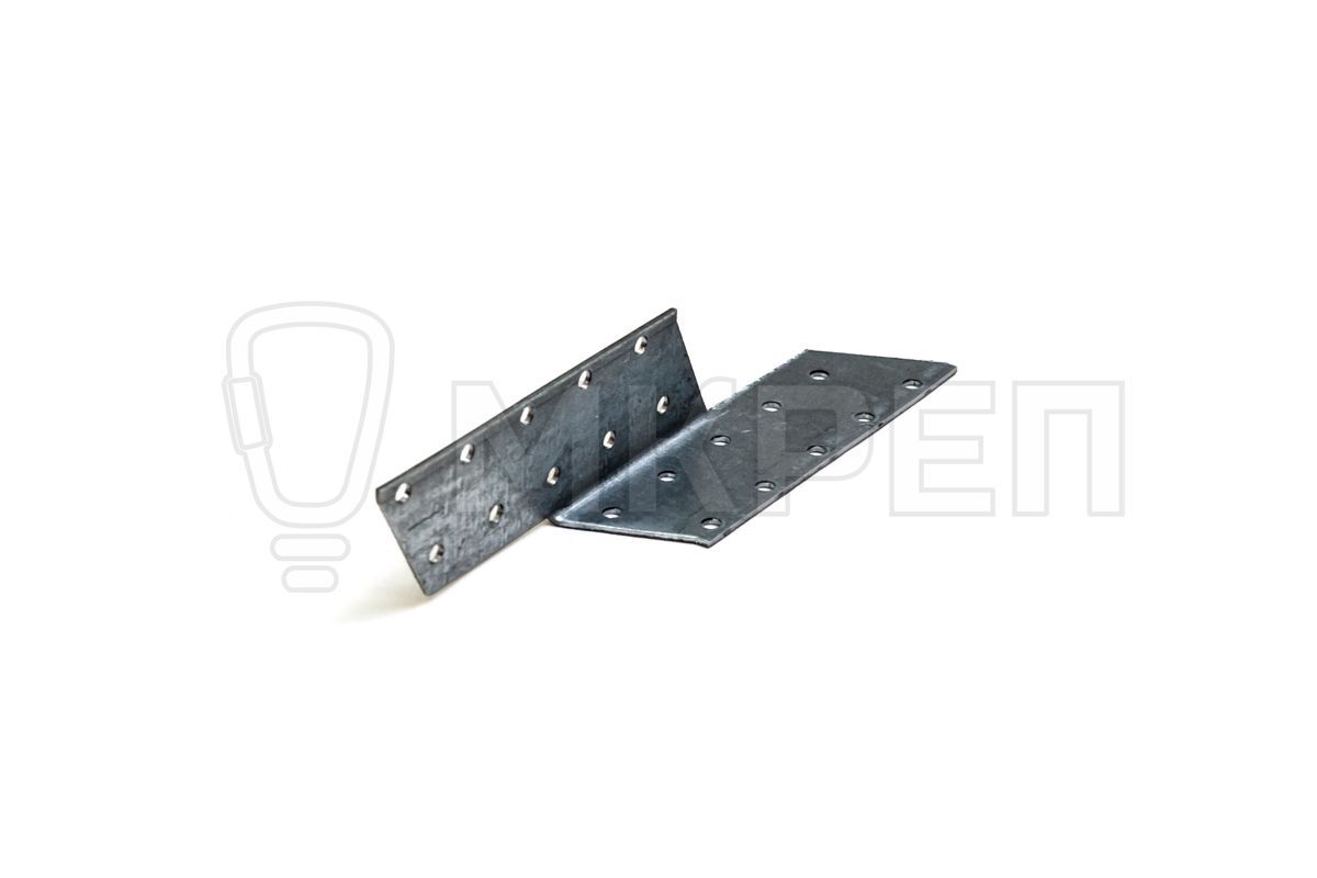 Держатель балки правый изготовлен из оцинкованной стали толщиной 2 мм. Держатель используется для соединения деревянных конструкций (бруса, балок) прямоугольного сечения размером 40х40 мм и более.