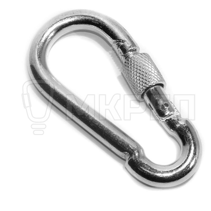 Карабин с муфтой применяется при такелажных работах для присоединения к тросам, цепям или канатам. Имеет затворный пружинный механизм и муфту с резьбой, для обеспечения блокировки данного механизма.