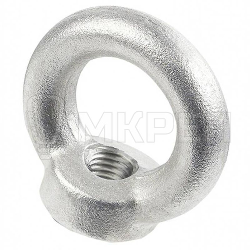 Рым-гайки устанавливаются в закладные болты, либо, при сквозном монтаже, накручиваются на резьбовые шпильки. Рым-гайка изготавливается из углеродистой стали. После производства деталь проходит оцинковку.